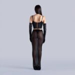 Le coppe e gli inserti in pelle esaltano il bustino, rinnovandolo in un’autentica espressione di carattere.